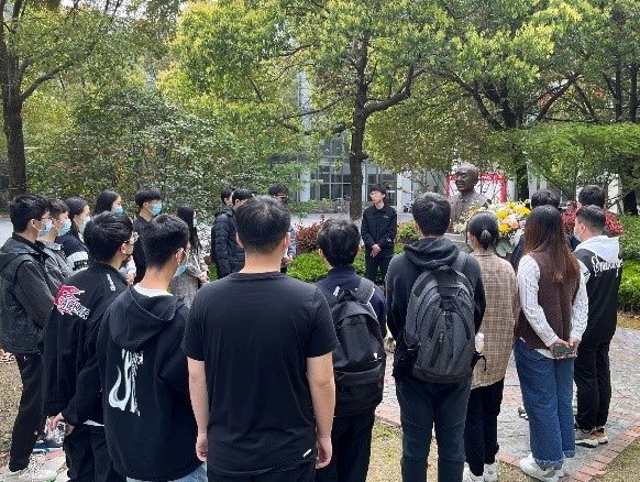 随后,参观的同学们面向院士塑像肃穆鞠躬,为陈达院士献花,缅怀陈达院士不计个人得失、无私奉献的崇高精神。陈达院士的精神始终熠熠闪光,同学们在院士精神的感召下,必将以更加振奋的精神、更加积极的精神面貌,在学习道路上不断求索。