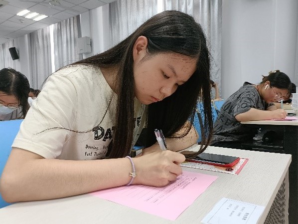 活动现场布置上模拟高考考场环境,并以“距离大学一年级结束还有25天,你准备好了吗?”作为考题,要求学生在进入“考场”前,领取答题纸,并按照考生信息就坐。活动开始后,一段穿插着同学们高中、高考相关照片的混剪视频将同学们的思绪带回了一年前,熟悉的情境唤起了共同的回忆。