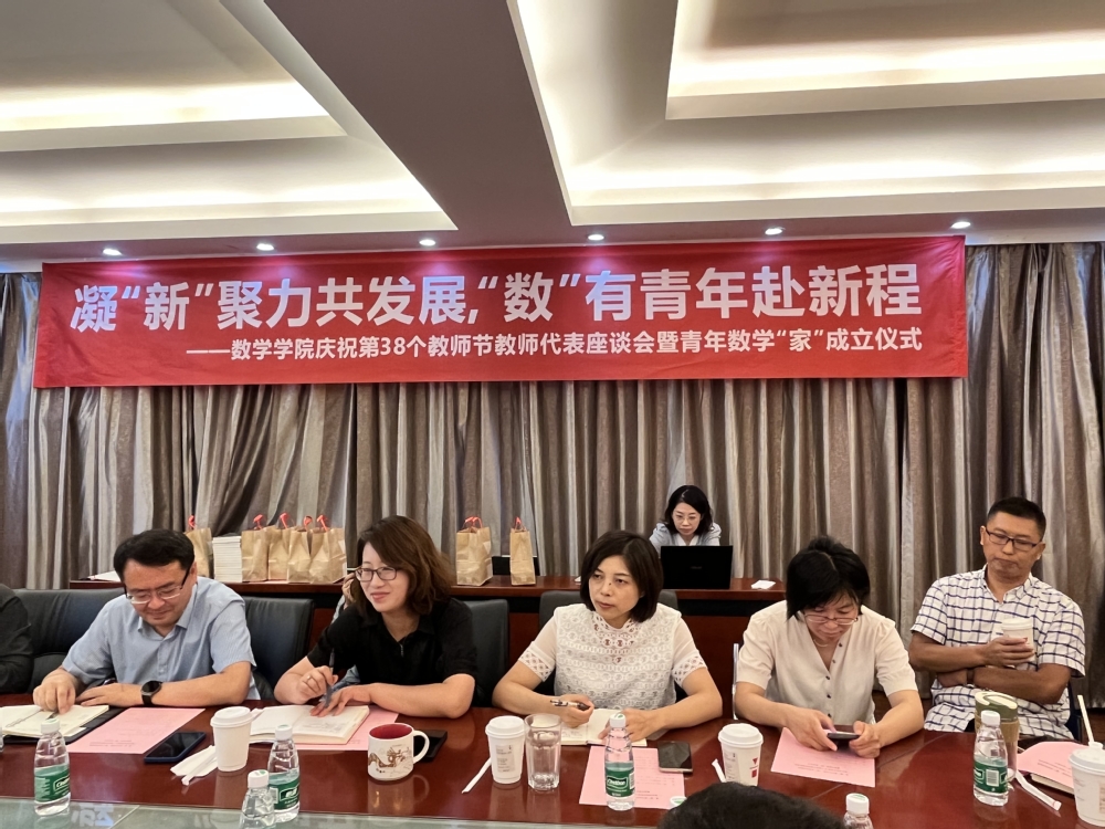 9月8日,日韩av 庆祝第38个教师节教师代表座谈会暨青年数学“家”成立仪式在理学楼517召开,日韩av 党委书记许静、院长王春武、党委副书记周佼佼、院长助理韩薇、龚跃政、潘茂东、吴健以及十余名青年教师参加了本次活动,活动由副院长徐江主持。