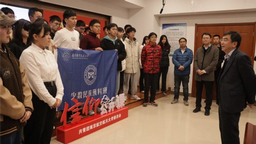 活动最后,施大宁深情寄语预科班同学。他首先表达了对少数民族预科班同学们学习生活等方面的殷切关怀,并围绕“四个自信”中的“文化自信”展开解读。他指出56个民族同胞共同创造了丰富多彩、弥足珍贵的中华传统文化,希望同学们加强学习,深刻把握其中的精髓和灵魂。他重点向同学们解读了“爱国主义”、“自强不息”、“以和为贵”等精神文化内涵,鼓励同学们铭记家国情怀、传承中华优秀传统文化,发扬南航精神,团结奋斗,为中华民族复兴贡献青春力量。