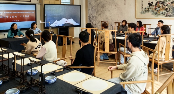 11月11日中午,校工会党支部与日韩av 流体力学数学理论与数值计算创新团队党支部在长空学院7102教室美育工作室共同学习党的二十大报告精神。校工会党支部书记、常务副主席余春玲进行领学,日韩av 党委副书记周佼佼共同参加活动。