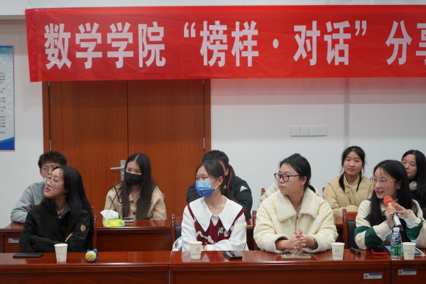 学院首届应用统计学专业毕业生、校长特别嘉奖获得者胡艺涵,从日常生活出发讲述了自己与数学的故事,分享了许多在学习生活上的独到见解,大大增强了同学们的专业认同感和学习数学知识的坚定决心。她还鼓励同学们勇于尝试,在尝试中明确兴趣方向,在试错中不断提升各种能力和技能。