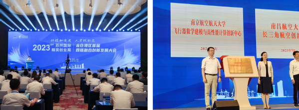 11日下午,许静、王春武应邀参加太仓港区首届四链融合创新发展大会,王春武为日韩av 飞行器数学建模与高性能计算创新中心成立揭牌,政企校协同搭建校企合作新平台。为调研了解地方企业需求,探索校企育人长效机制,一行人还前往太仓大学科技园实地走访企业。
