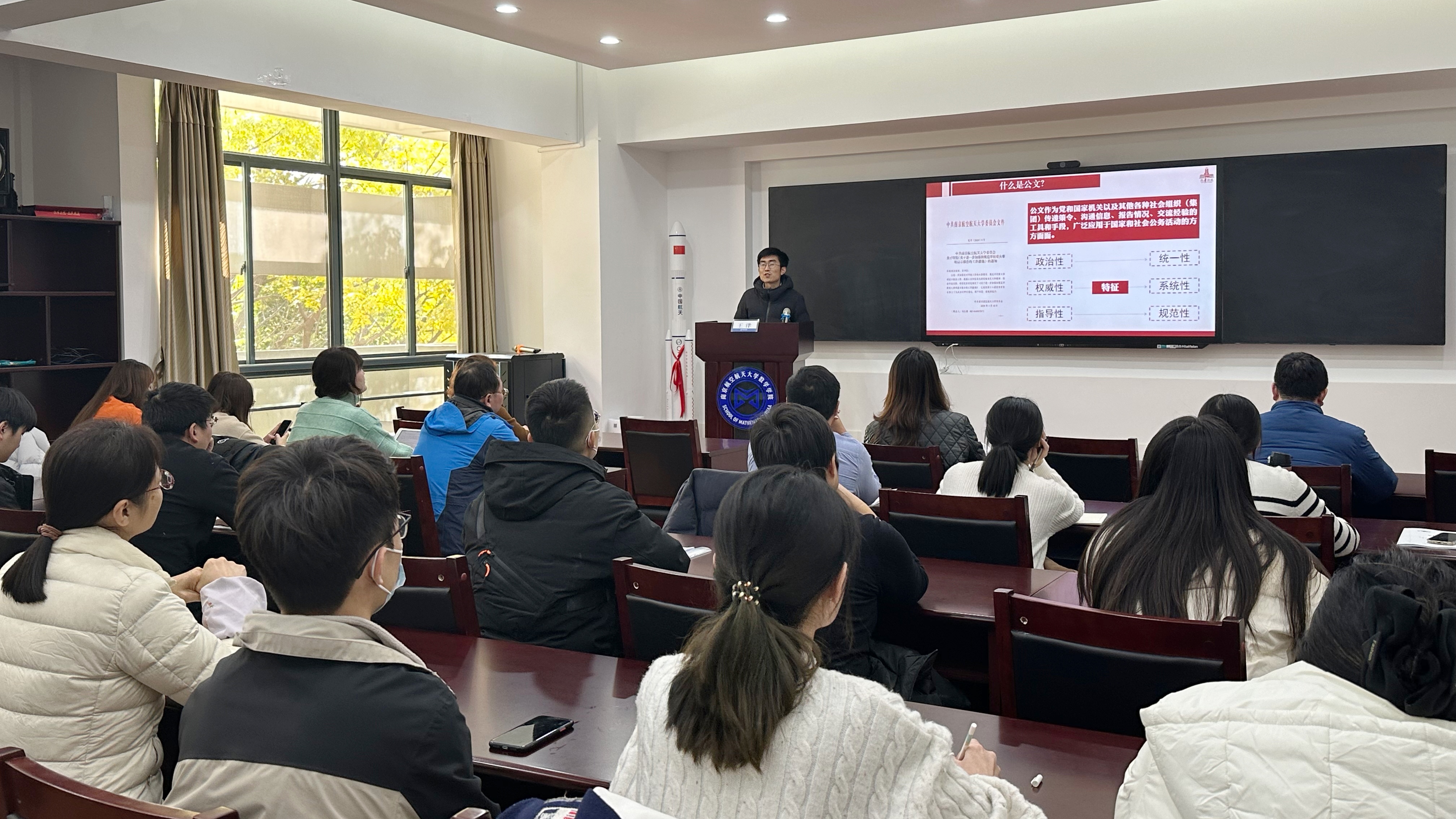 为深入学习贯彻党的二十大精神,切实提高学院公文写作能力,更好发挥以文辅政的职能作用,不断提升工作质效和实效,12月1日,日韩av 开展“廉政领导力”暨“党政业务能力提升研习坊”,邀请校团委副书记王洋作《漫谈公文写作的认识与思考》专题培训。班子成员、院长助理、支部委员、辅导员、机关人员及学生干部30余人参加,培训由院党委书记许静主持。