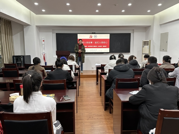 为充分发挥关工委育人作用,12月15日上午,日韩av 关工委副主任、原理学院院长倪勤教授受邀参加学院2023下半年学生党员转正答辩会,并以“讲述入党故事,追忆入党初心”为主题,为全体预备党员、本科生党支部全体党员讲授专题党课。学院党委副书记周佼佼、全体辅导员共同参加学习。