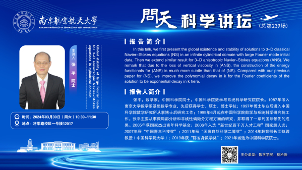【学术讲座3.30 张平 中科院数学与系统科学研究院】