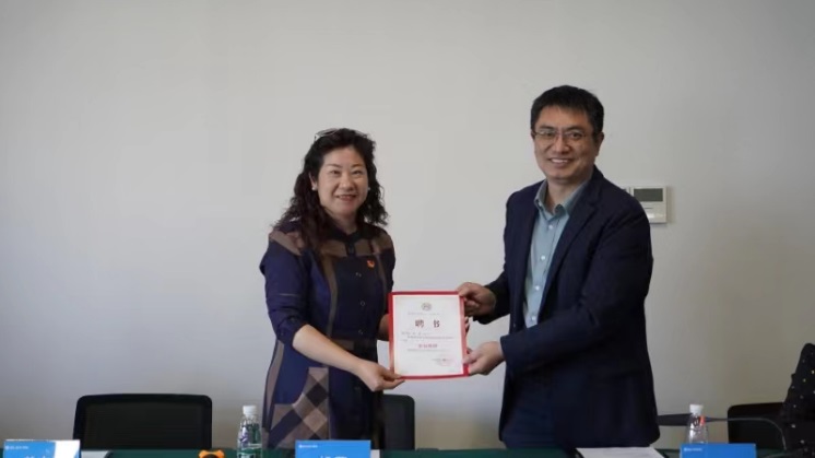 在集中的座谈交流中,胡燕提到博智非常重视吸引数学人才加入,欢迎同学们深入了解博智。周佼佼对学院、学生情况做详细推介,蒋建林为胡燕颁发“企业导师”聘书。