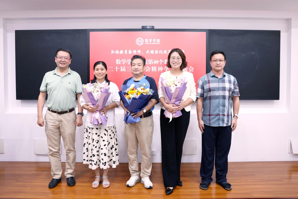 一支粉笔染双鬓,三尺讲台度春秋。学院为退休教师、入职秩年教师、新入职教师代表送上鲜花和祝福。