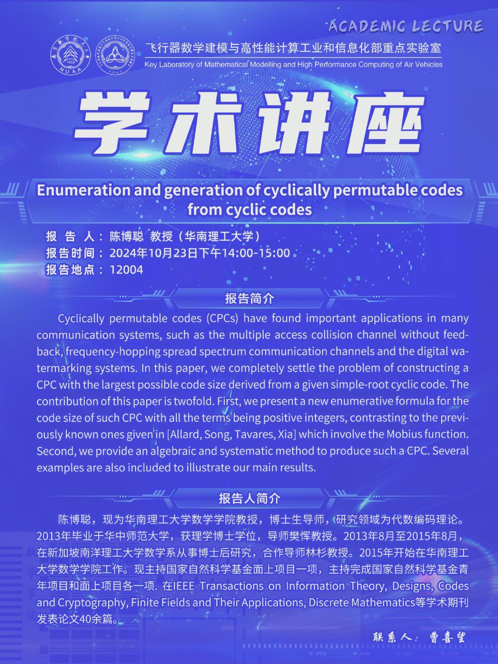 【学术讲座10.23 陈博聪 华南理工大学】