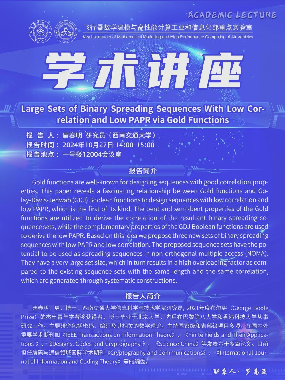 【学术讲座10.27 唐春明 西南交通大学】