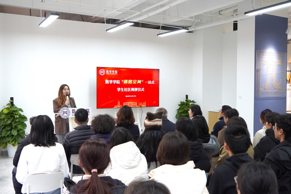 许静围绕“感动”“感谢”“期待”三个关键词作总结讲话,对“遇数空间”一站式学生社区的揭牌表示祝贺,对付出智慧、辛劳的学工团队和同学们表达感谢,并对一站式学生社区未来建设提出期待。她指出,“遇数空间”一站式学生社区的落成,是学院发展历程中的一件大事,更是事关每一位数院学子学习生活的一件喜事。她对“遇数空间”一站式学生社区的建设提出三点希望:一是突出组织赋能,创建“先锋型”社区;二是突出专业赋能,打造“学习型”社区;三是突出文化赋能,构建“创新型”社区。她强调,希望全院师生共谋、共建、共享,走“特色化、高质量”之路,将“遇数空间”打造成一个集思想引领、师生协同、学习互助、创新赋能、民族交融五大功能为一体的育人场域,让每一位同学能够在这里用数学理解世界,也成就更加深刻的自己。