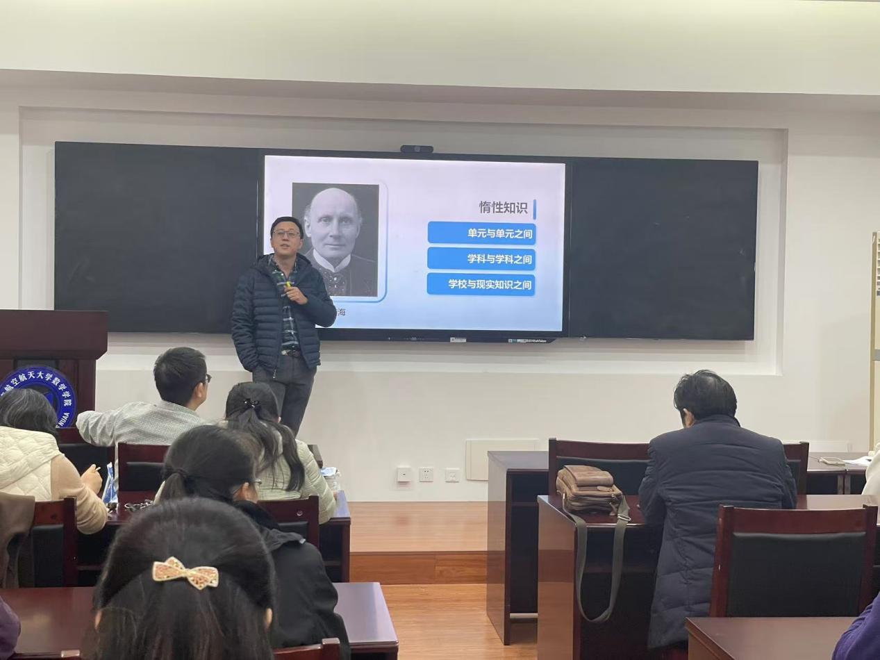 随后,朱晓星围绕“三航特色”数学教学素养单元构建这一主题,详细阐述了数学教学素养单元构建的基本原则和方法,他提出了以学科知识体系、核心任务或生活中现实问题为主题进行学习单元重构的思路,并详细介绍了这些重构方法的具体操作和实施步骤。同时,他还分享了自己在教学实践中的一些成功案例和宝贵经验,为参会者提供了有益的参考和借鉴。