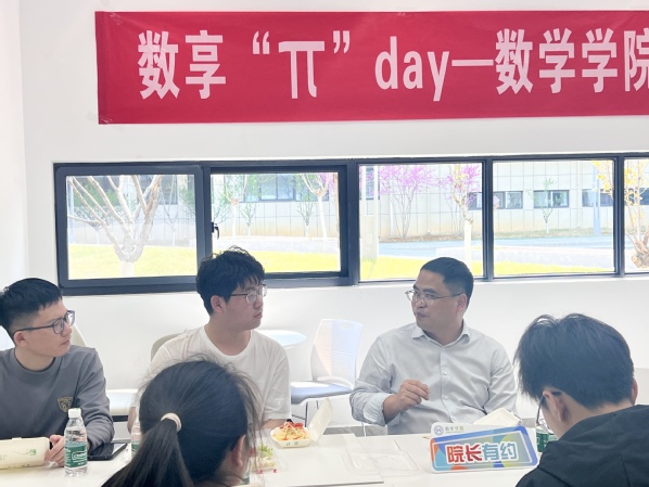 为进一步强化学术引领,激发学习内驱力,3月26日中午,日韩av 在天目湖校区一站式学生社区举办数享“π”day——院长有约活动。学院副院长龚跃政,辅导员赵美婷,2024级本预科生代表参加此次活动。