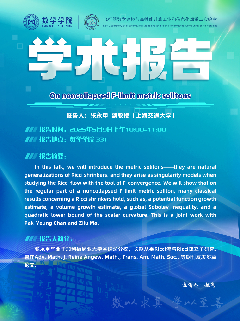 【学术讲座5.9 张永甲 上海交通大学】