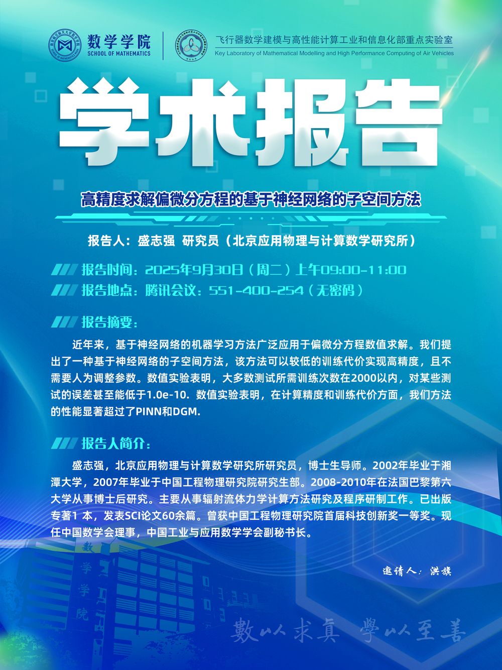 【学术讲座9.30 盛志强 北京应用物理与计算数学研究所】