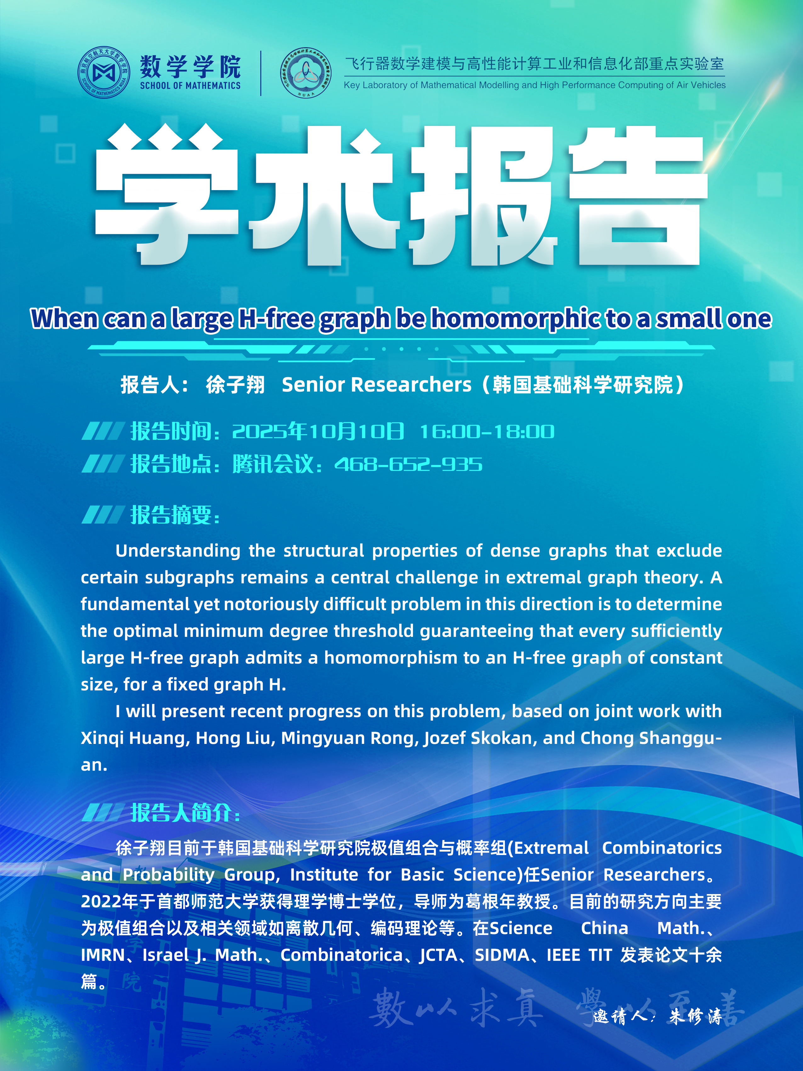 【学术讲座10.10 徐子翔 韩国基础科学研究院】