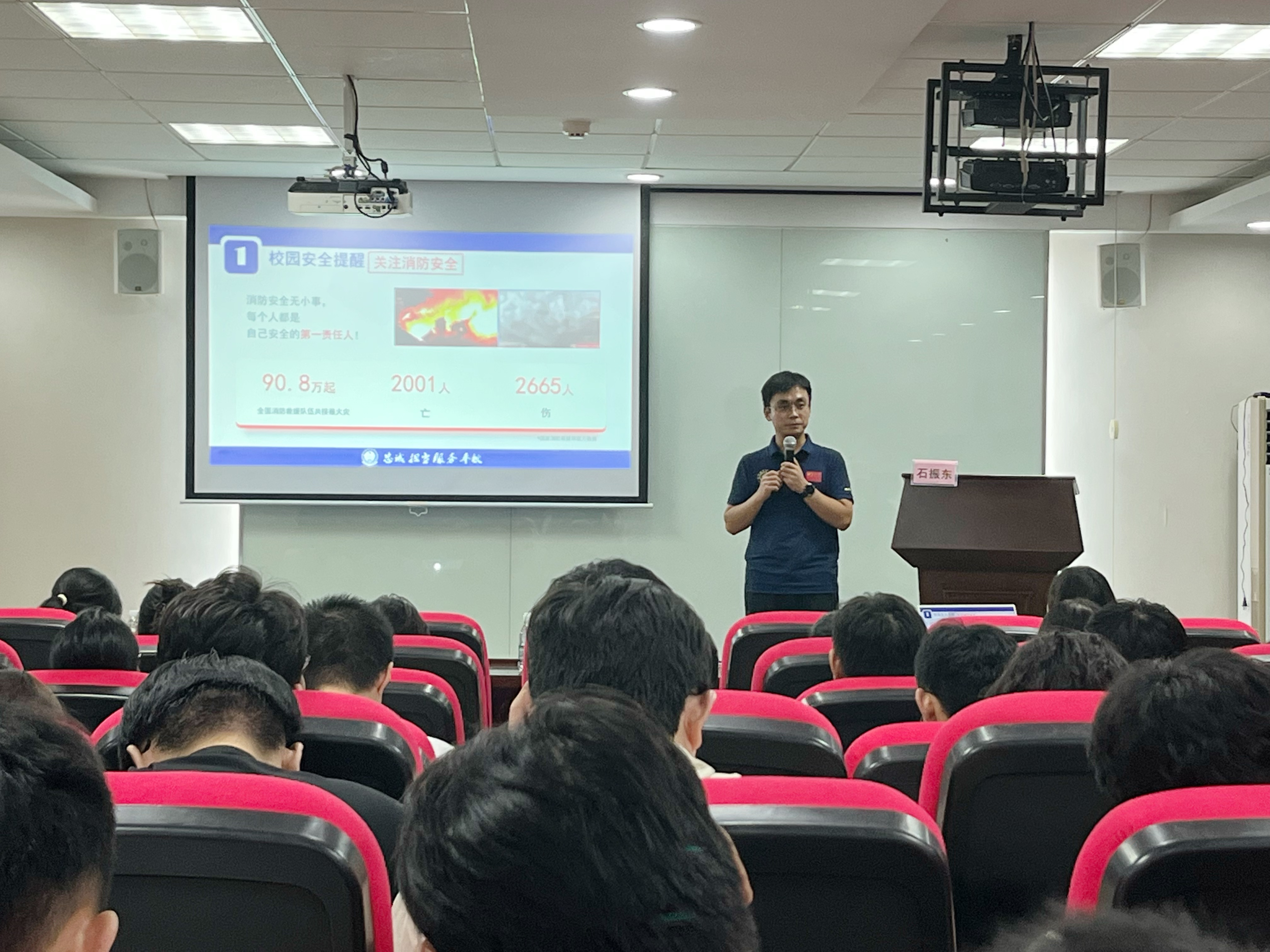 “安全是科研的生命线,更是研究生成长的底线保障。” 讲座伊始,石振东老师强调了安全教育对于研究生群体的特殊意义 —— 作为长期投身实验室研究、频繁接触网络学术资源的群体,研究生更需筑牢安全防线。讲座过程中,他聚焦研究生高频接触的安全风险场景,结合近期周边校园发生的真实案例,从提高消防安全意识、防范电信网络诈骗两个重点切入,开展形式生动且实用性极强的案例剖析。与此同时,他系统拆解了电信网络诈骗的常见手段,如刷单返利、网络虚假产品交易、裸聊诈骗等具体真实案例,帮助同学们掌握可靠的识破骗局、规避风险的办法举措。最后他还为同学们讲解了校园安全应急的基本方法,鼓励大家一旦遇到类似问题时及时上报,积极求助。